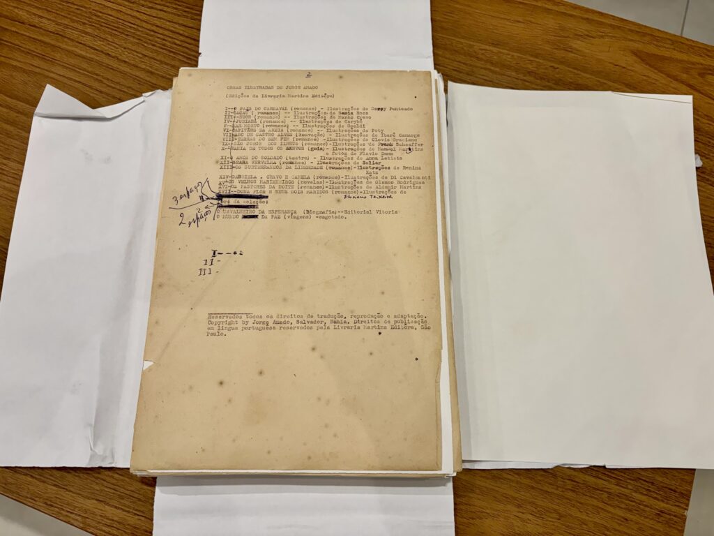 Manuscritos originais do livro ‘Dona Flor e seus dois maridos’ | Acervo Fundação Casa de Jorge Amado