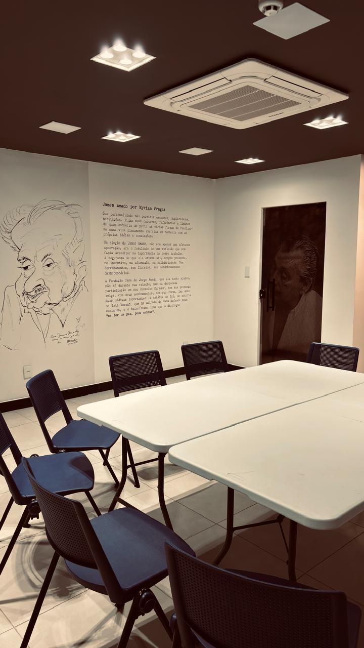 A Sala James Amado é um espaço que pode ser reservado para locação temporária e é destinado a abrigar oficinas, cursos, palestras, etc.